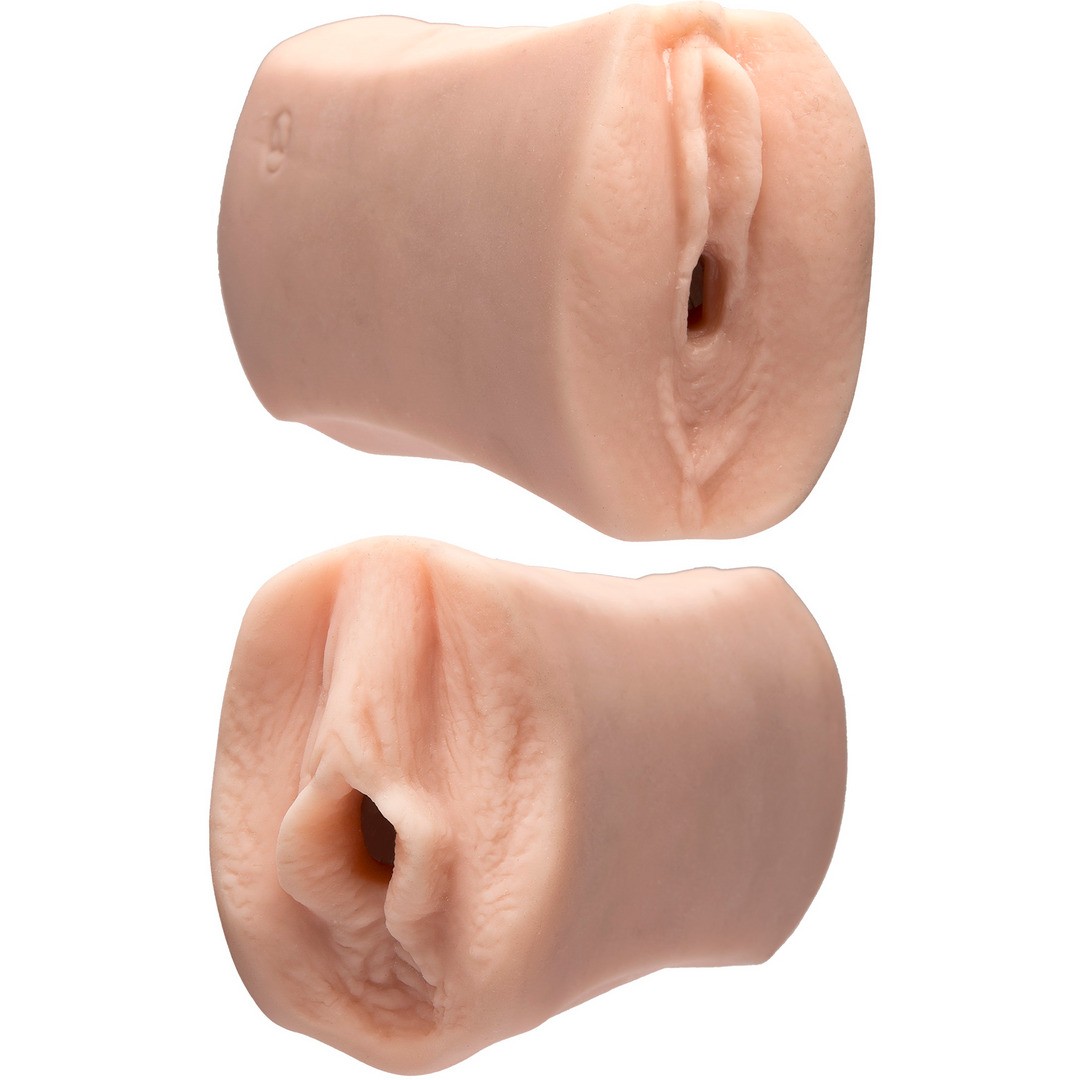 Masturbatore ULTRASKYN a doppia estremità Jessie Andrews & Julia Ann, con due vagine realistiche e interno testurizzato, sicuro per il corpo.
