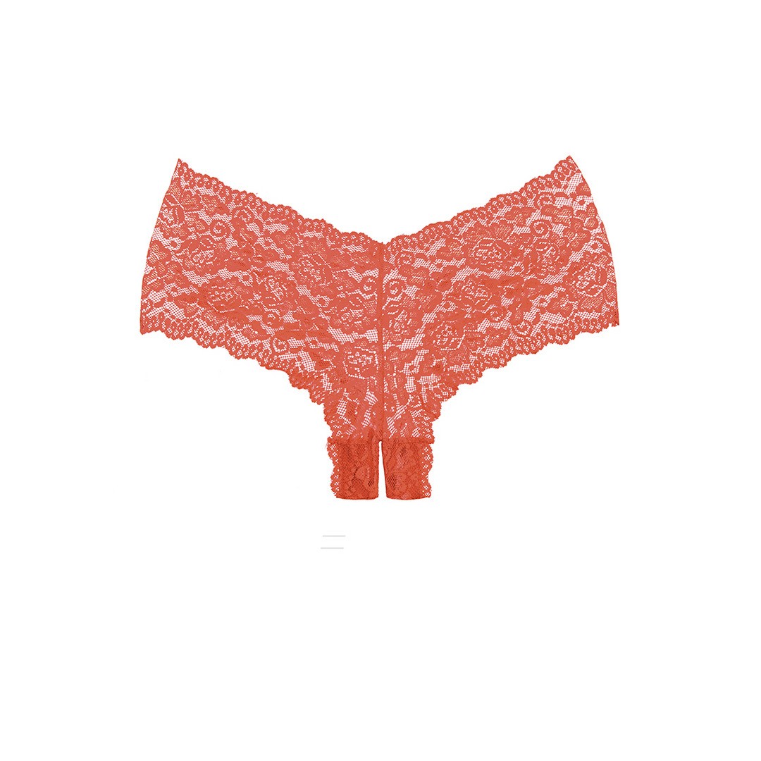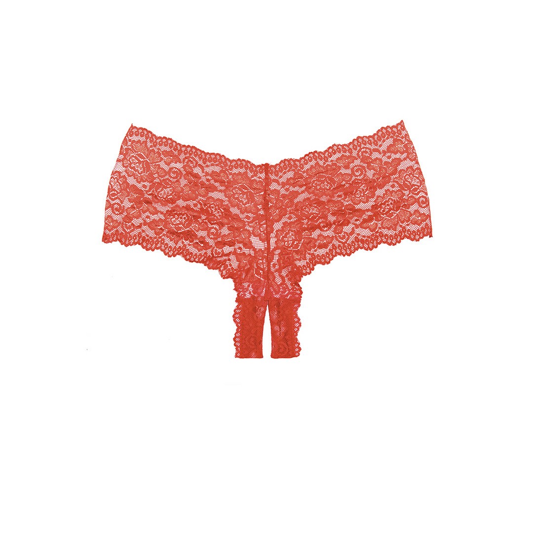 Il classico pantaloncino in pizzo è diventato selvaggio con un tocco crotchless, che abbraccia i fianchi e addolcisce il derriere.