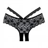 Un turbine di pizzo smerlato ricopre i fianchi e il derriere in questa sontuosa mutandina a tassello aperto dal taglio maschile, con spalline alte in pizzo che salgono in obliquo per creare un effetto clessidra.