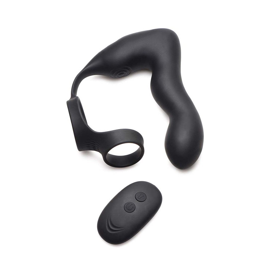 Stimolatore prostatico gonfiabile in silicone, con vibrazione a 3 velocità e 7 modalità, anelli di costrizione e telecomando.