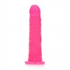 Dildo Glow in the Dark REALROCK, 17,5 cm, sicuro per il corpo, con ventosa, compatibile con imbracatura e adatto al piacere anale o vaginale.