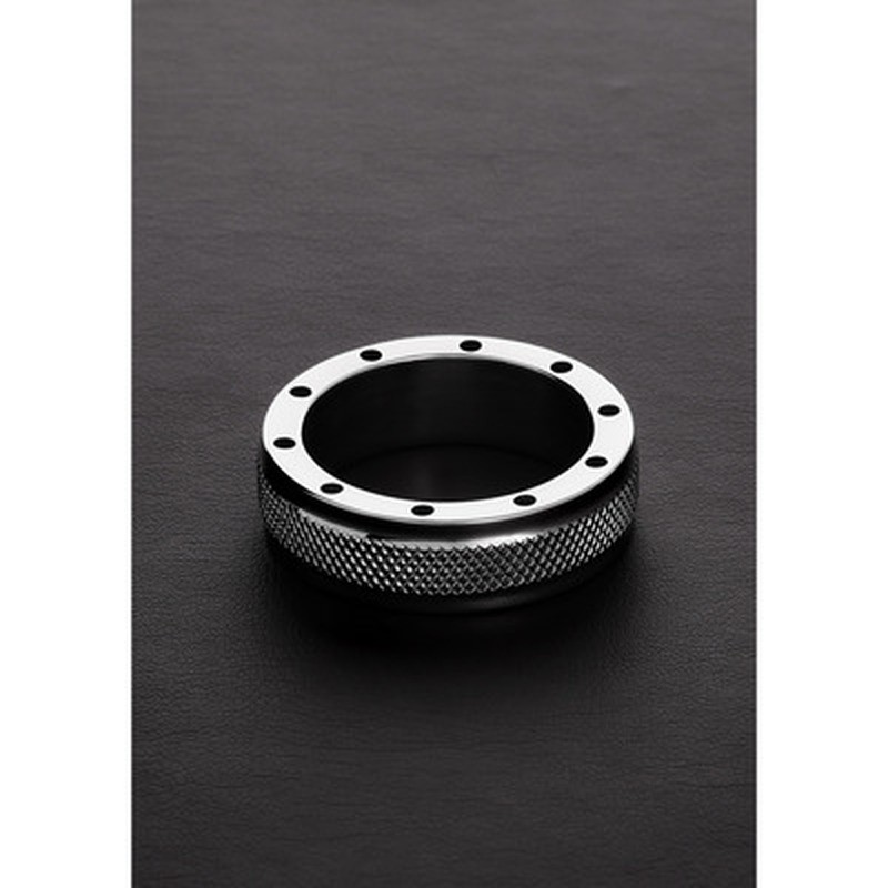 Anello per pene dentellato in acciaio inossidabile, 5,5 cm x 1,5 cm, con 11 fori di ventilazione per un piacere intenso.
