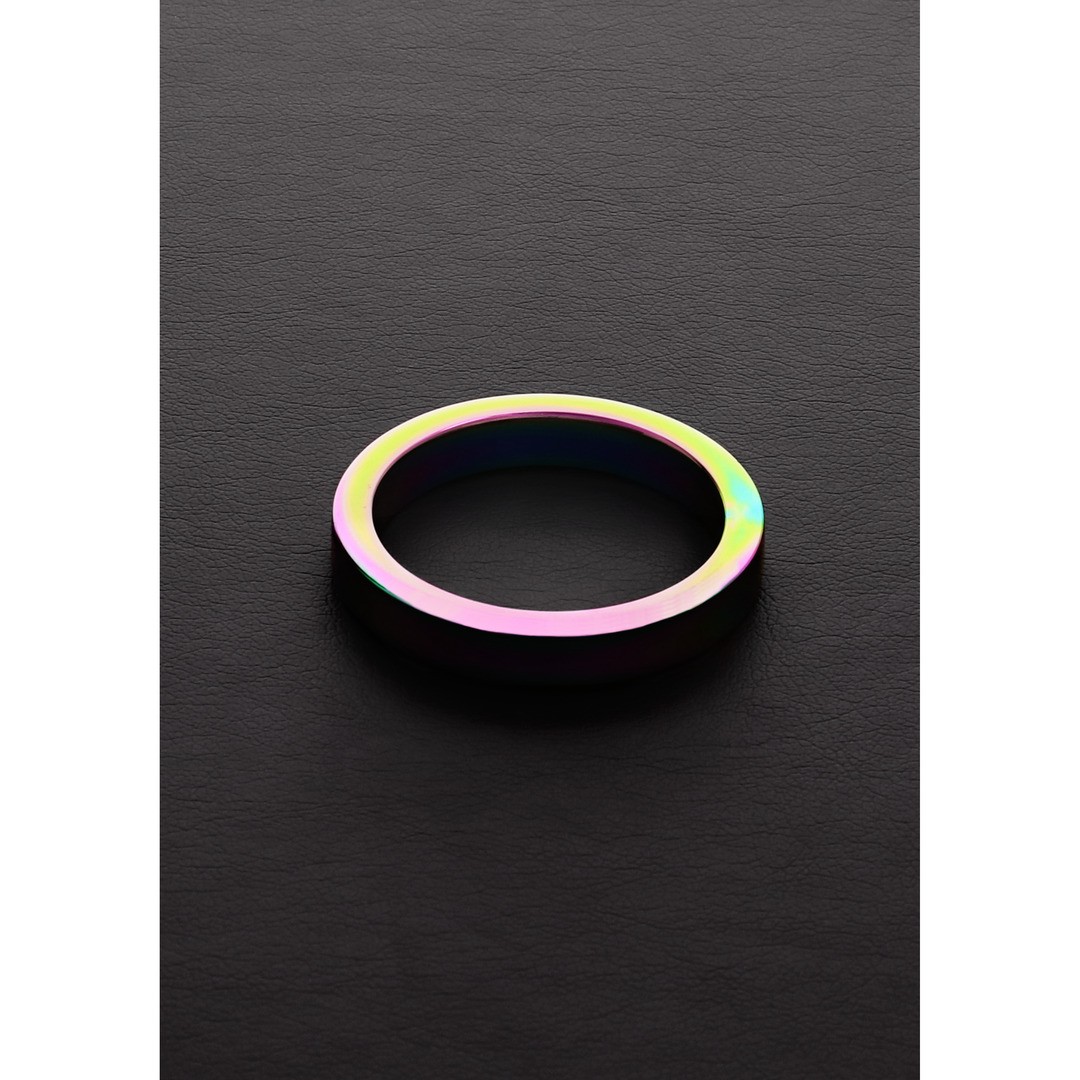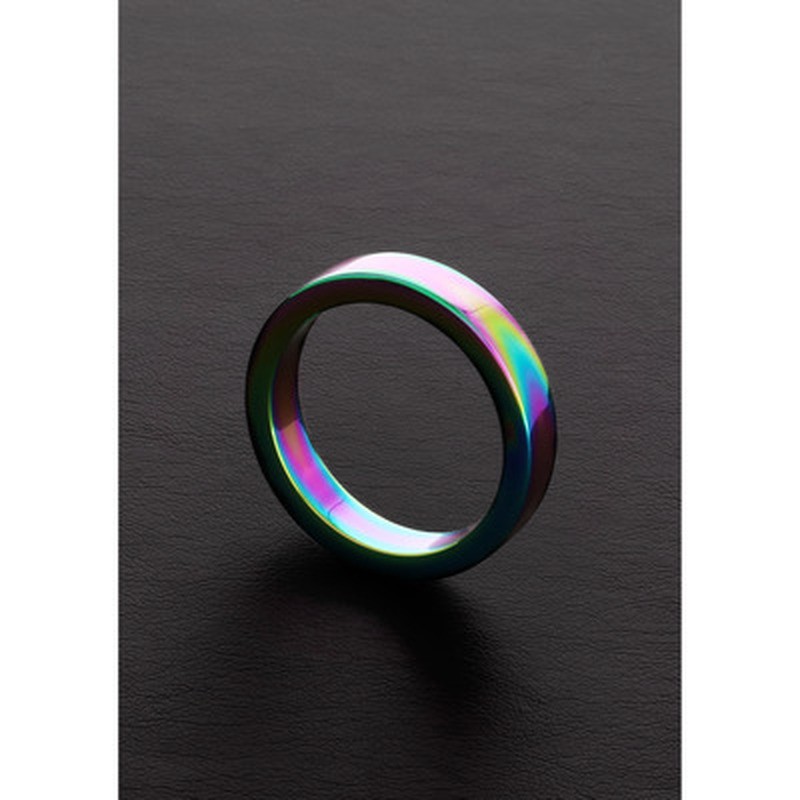 Anello per il pene Rainbow Flat in acciaio inossidabile anodizzato, 5 cm, elegante e resistente per erezioni più prolungate.