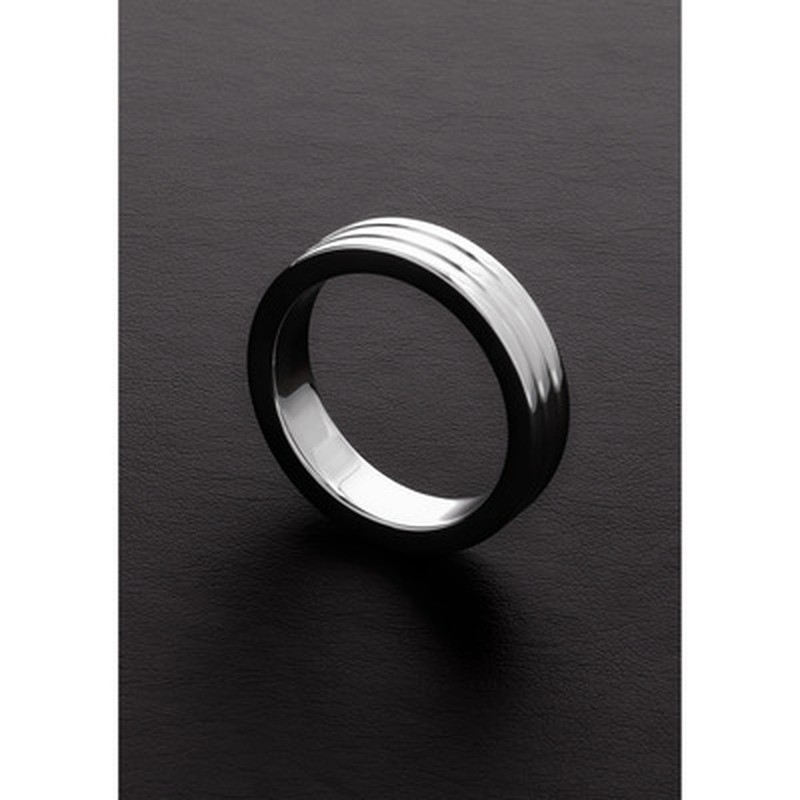 Anello per il pene in acciaio inossidabile massiccio con finitura testurizzata a nervature. Questo anello aiuta a prolungare l'erezione e, allo stesso tempo, offre una sensazione extra grazie al suo design elegante e funzionale.