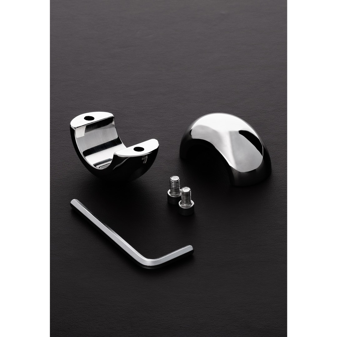 I bordi arrotondati in acciaio inossidabile conferiscono a questo estensore per testicoli un aspetto distintivo, pur rimanendo semplice e funzionale grazie al suo design a anello diviso.