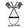 Per un look da fashionista e seduttrice. Sicuramente non per Zoom, questo è solo di persona. Il top bolero in rete con bretelle regolabili davanti e dietro si fonde con una mutandina completamente aperta con spalline regolabili. Per addolcire ulteriormente il look, i reggicalze evidenziano i fianchi con fasce regolabili allegate.