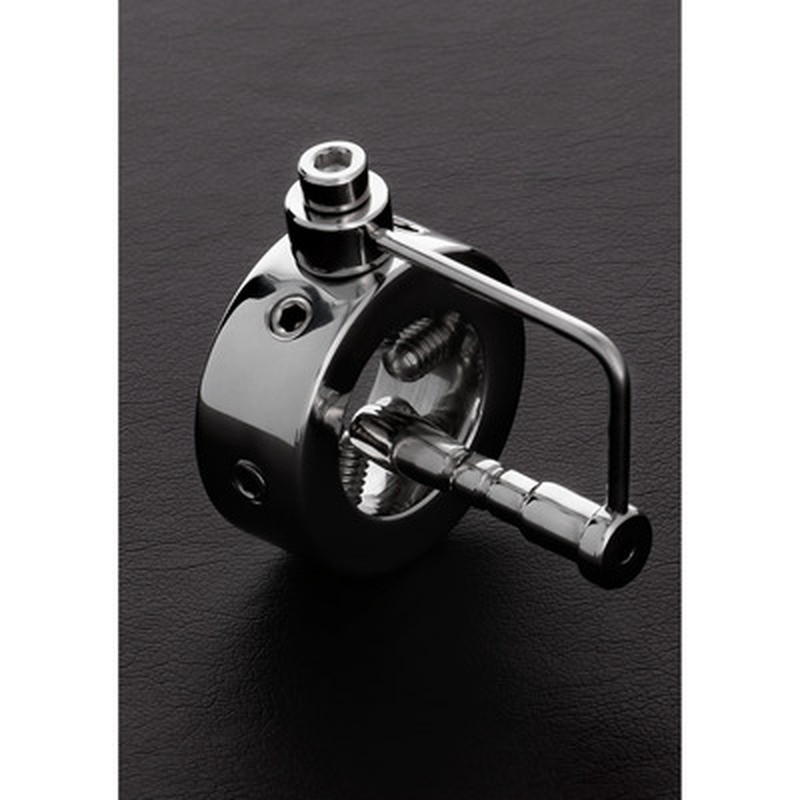Anello per il pene con sonda per l'uretra e 6 punte in acciaio inossidabile per una provocante tortura erotica.