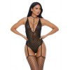 Body in maglia a maglie con collare, schiena incrociata e reggicalze per un look delicato e seducente.