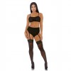 Set di lingerie in maglia leopardata con reggiseno a canotta e tanga a vita alta con reggicalze.