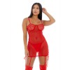 Il completo di lingerie a due pezzi, camicia da notte con perizoma Ring It On presenta maglia trasparente, coppe strutturate con ferretto a W senza fodera, cordoncino dorato con anelli laterali, reggicalze e slip abbinati. Questo prodotto è fornito in un sacchetto di plastica.