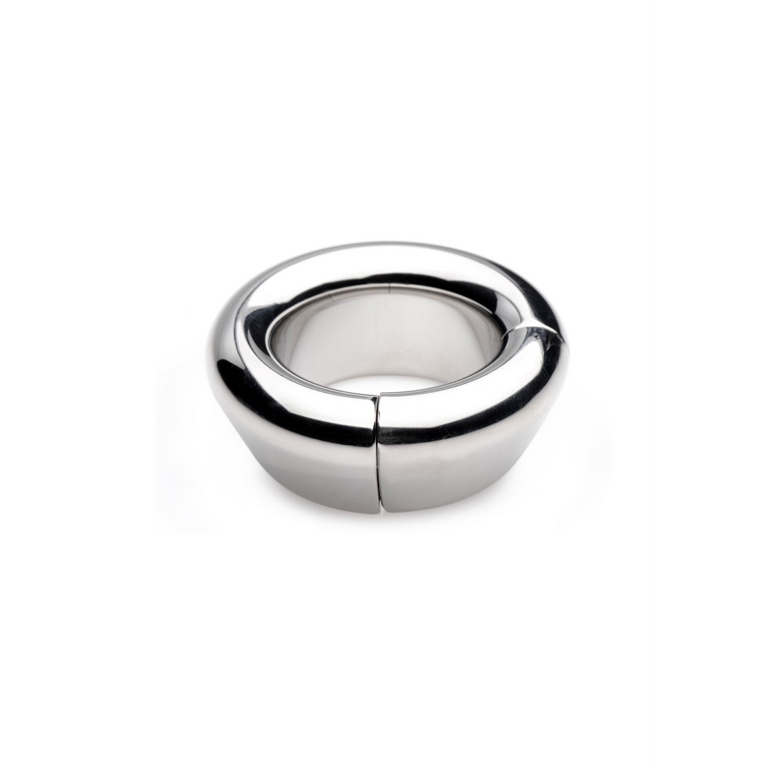 Estensore per testicoli in acciaio inossidabile con chiusura magnetica, per una stimolazione intensa grazie alla forza di gravità.