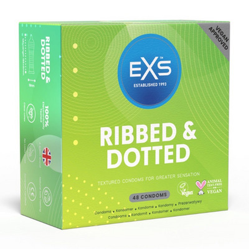 Contiene 48 preservativi EXS con nervature e puntini in lattice di alta qualità. I preservativi EXS con nervature e puntini sono una scelta eccellente per gli amanti che desiderano un'esperienza intima e sensuale.