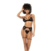 Aggiungete un tocco rock and roll alla vostra lingerie con questo audace set di tre pezzi in tessuto effetto pelle.
