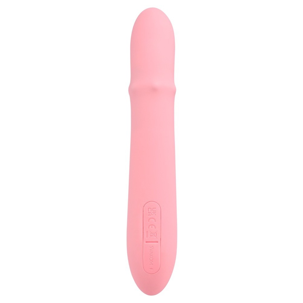 piace alla vagina, al punto G e al clitoride allo stesso tempo. Dispone inoltre di vibrazioni versatili e di un anello di perle nel fusto che si muove su e giù per massaggiare la vagina molto intensamente. Le silenziose funzioni possono essere facilmente controllate e combinate premendo un pulsante. Le regolazioni individuali delle vibrazioni, il gioco a distanza e le interazioni con il partner sono possibili con l'app SVAKOM. Anche i video e le webcam possono essere utilizzati in modo interattivo con l'app FeelConnect.