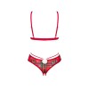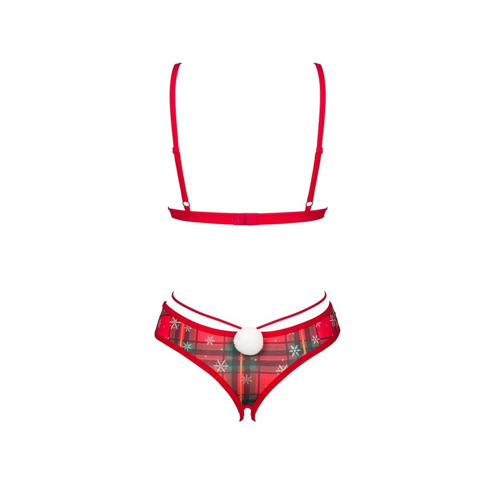 Il set di lingerie Ms. Merrilo di Obsessive contiene un reggiseno e slip senza cavallo. Sono realizzati in delicato tulle elasticizzato a scacchi. Il tulle è decorato con fiocchi di neve bianchi. Il set è morbido ed elastico per una vestibilità molto confortevole. Tra le coppe senza fili c'è una piccola stella decorativa. Le spalline possono essere regolate per adattarsi. Gli slip hanno un elegante cinturino in vita e un piccolo pompon di peluche bianco sulle natiche. Sono seducentemente senza cavallo.