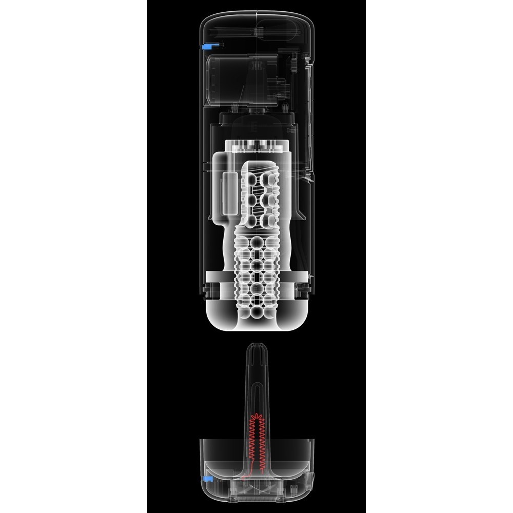 Le vibrazioni e i massaggi di spinta hanno ciascuno 10 modalità e sono facilmente controllabili premendo i pulsanti sul pannello di controllo a LED. La vibrazione e i massaggi possono essere controllati separatamente. La guaina estremamente morbida è dotata di punti all'interno che massaggiano intensamente il pene. La guaina ha un design neutro e può essere rimossa per la pulizia.