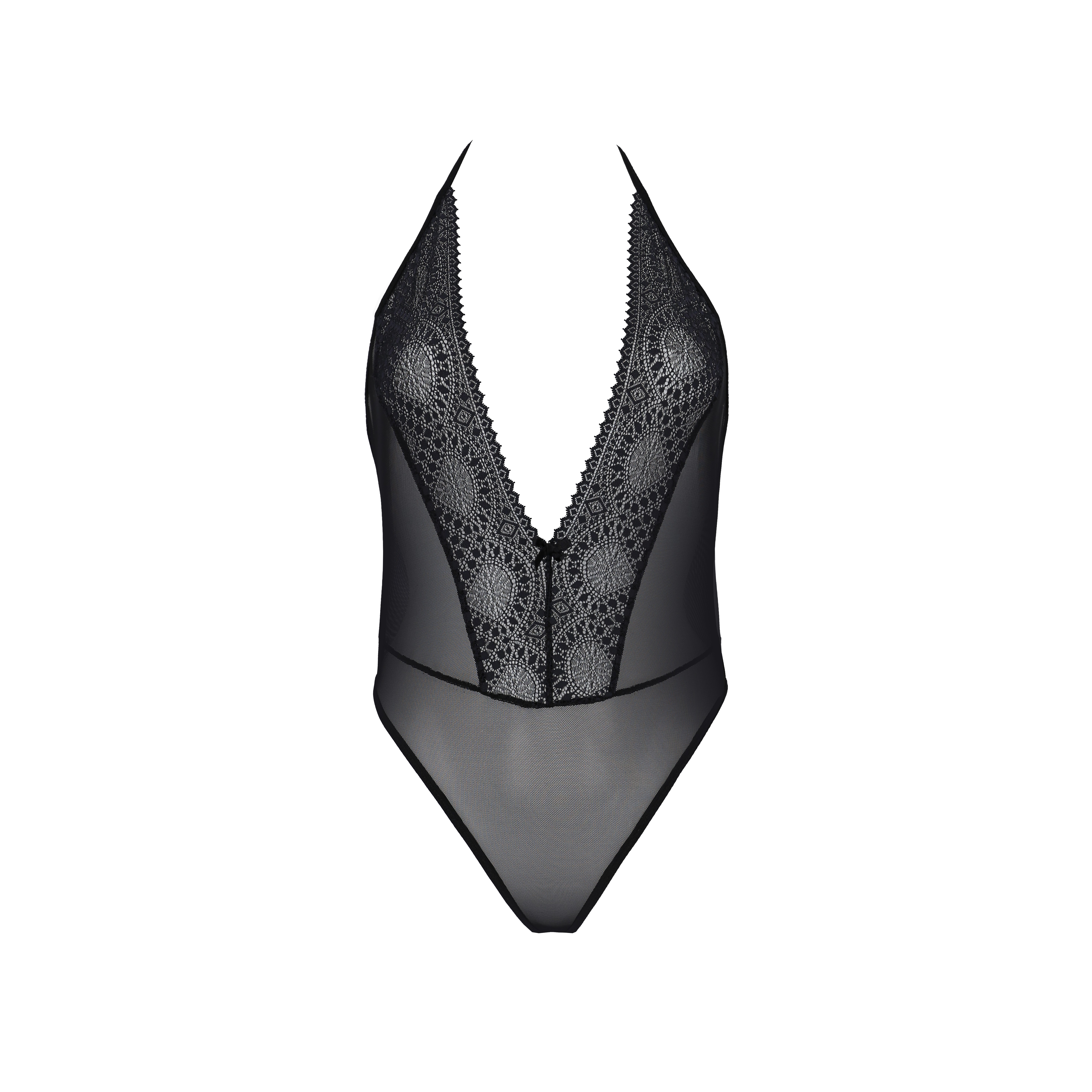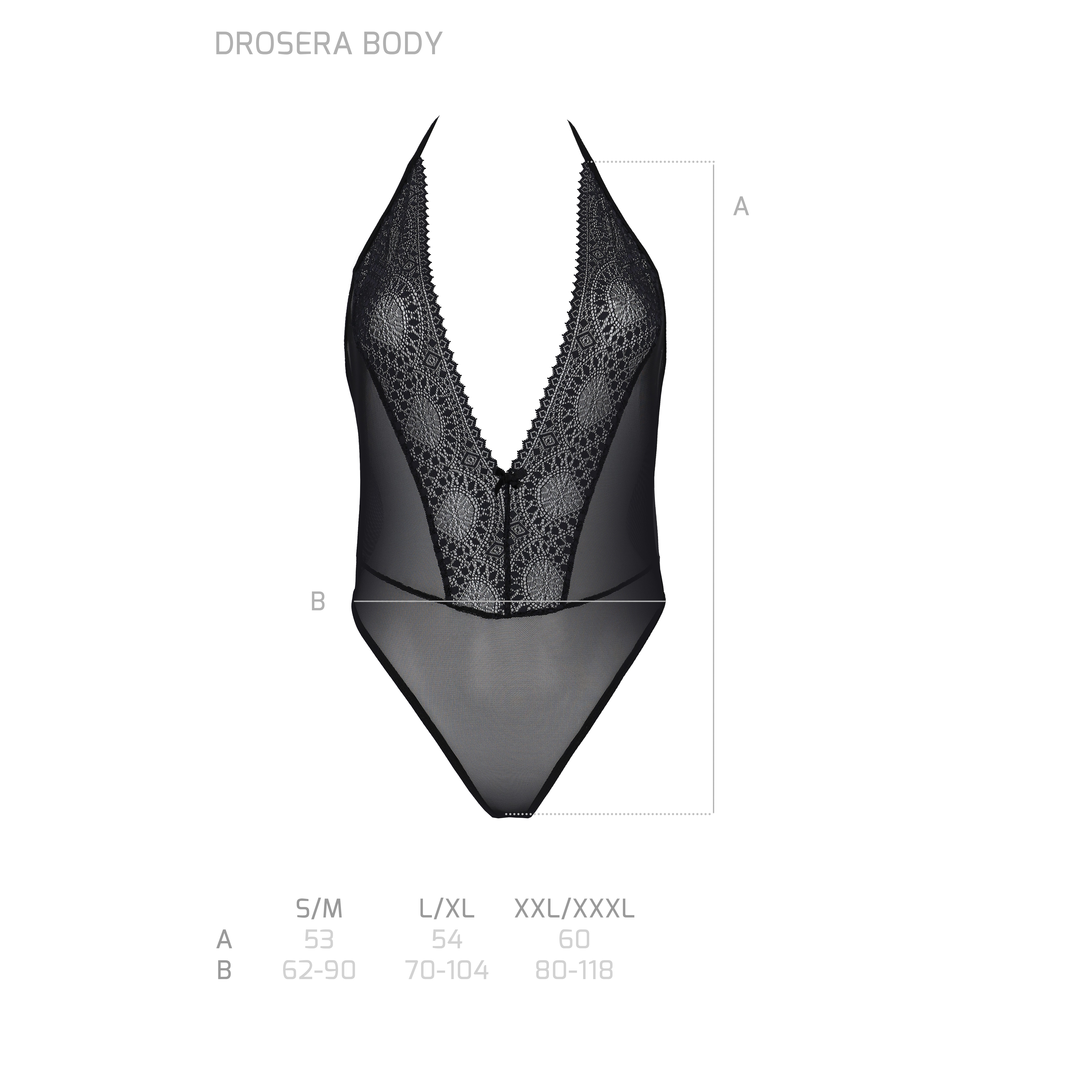 Il body nero DROSERA di Passion unisce sensualità e sostenibilità, con un design sofisticato e un tocco di moderna eleganza.