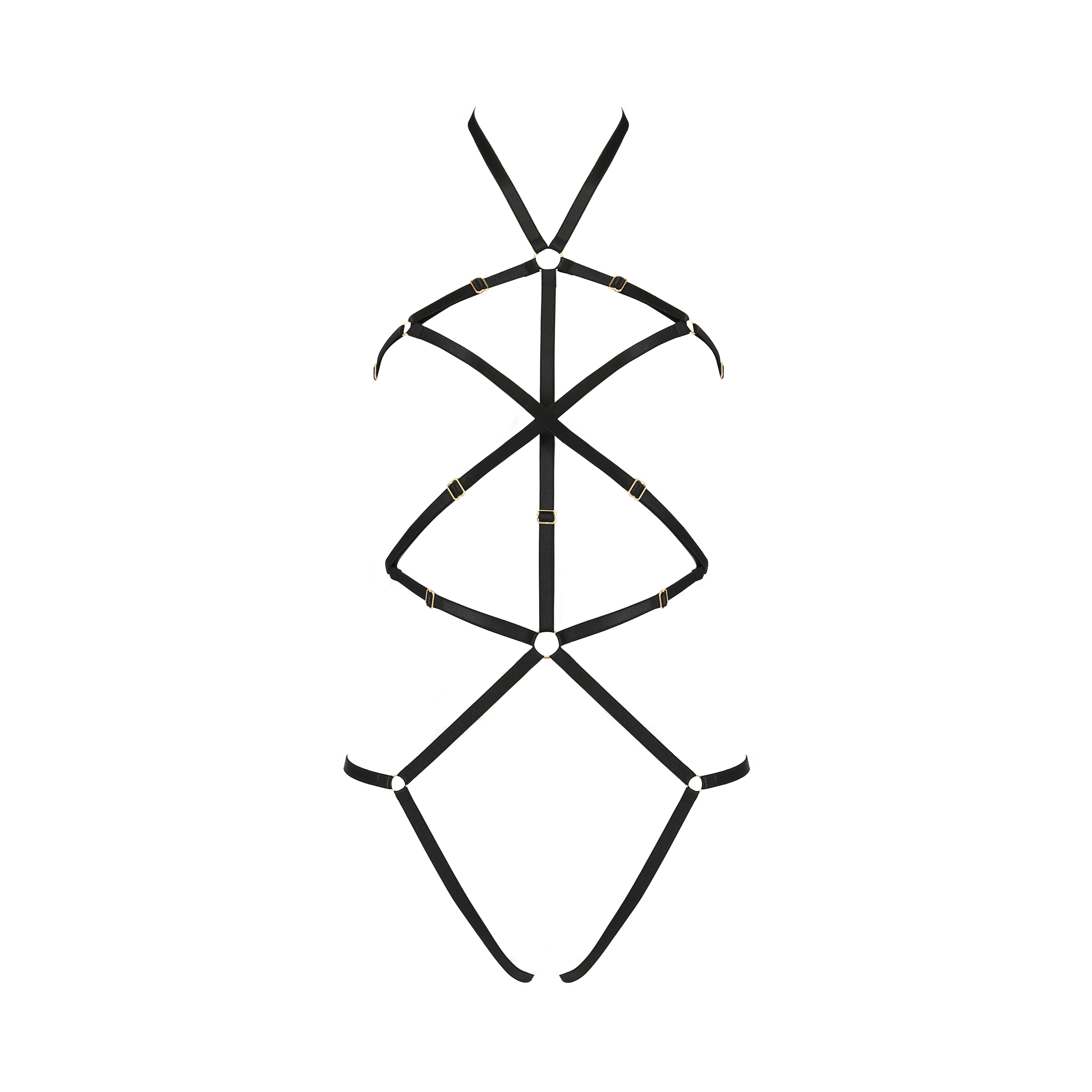 Il body Ivena si distingue per la sua costruzione insolita, con cinghie sensuali che avvolgono il corpo, sottolineando lo stile personale e funzionando perfettamente come pezzo unico.