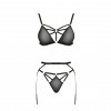 Il set Meggy unisce sensualità e raffinatezza con reggiseno, perizoma e reggicalze. Il design artistico mette in risalto le vostre curve, mentre le cinghie versatili vi permettono di indossarlo completo o separatamente, rendendolo perfetto per ogni occasione.