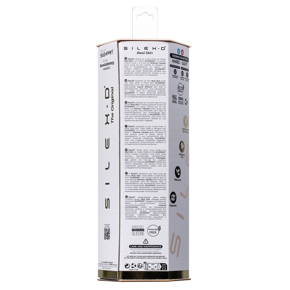 Il dildo realistico 7" Model 1 Real Skin di SilexD ha una potente ventosa e presenta la forma di un pene con glande sporgente, vene stimolanti e testicoli prominenti. Si distingue non solo per il suo aspetto realistico, ma anche per la sensazione di vita che offre, indipendentemente dalla posizione o dall'uso da soli o con un partner.