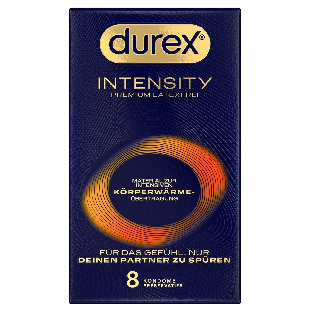 I profilattici Intensity di Durex, estremamente sottili e privi di lattice, sono realizzati in nitrile e garantiscono un'intensa trasmissione del calore corporeo e la sensazione di sentire solo il partner. La loro dimensione extra (larghezza nominale 61 mm) garantisce un maggiore comfort durante l'uso. Sono generosamente lubrificati con un lubrificante a base di silicone.