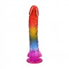 Dildo realistico con testicoli, lungo 24 cm, in tonalità cristalline, con ventosa e texture autentica per un piacere sicuro e intenso.