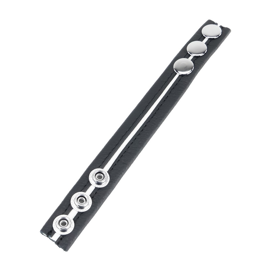 Anello per il pene in vera pelle, con tre chiusure metalliche e diametro regolabile, prodotto in Europa.