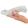 Esta manga transparente para o pénis com extensão e anel esférico da Crystal aumenta visivelmente a espessura graças ao seu material espesso e às veias pronunciadas. A glande sólida proporciona ainda um aumento adicional de 5 cm no comprimento.