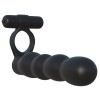 Anel para o pénis de encaixe seguro com bala vibratória inserível e contas anais integradas. O anel é colocado sobre o pénis, permitindo-lhe desfrutar de um efeito de pénis duplo, combinado com um estimulador de clitóris vibratório para uma estimulação tripla intensa. O anel para o pénis ajuda ainda a manter a ereção de forma eficaz, graças ao efeito de congestão sanguínea. A pequena e potente bala vibratória é inserida no anel superior, oferecendo uma estimulação adicional e emocionante. A bala vibratória é à prova de água, podendo ser utilizada no banho ou no duche.