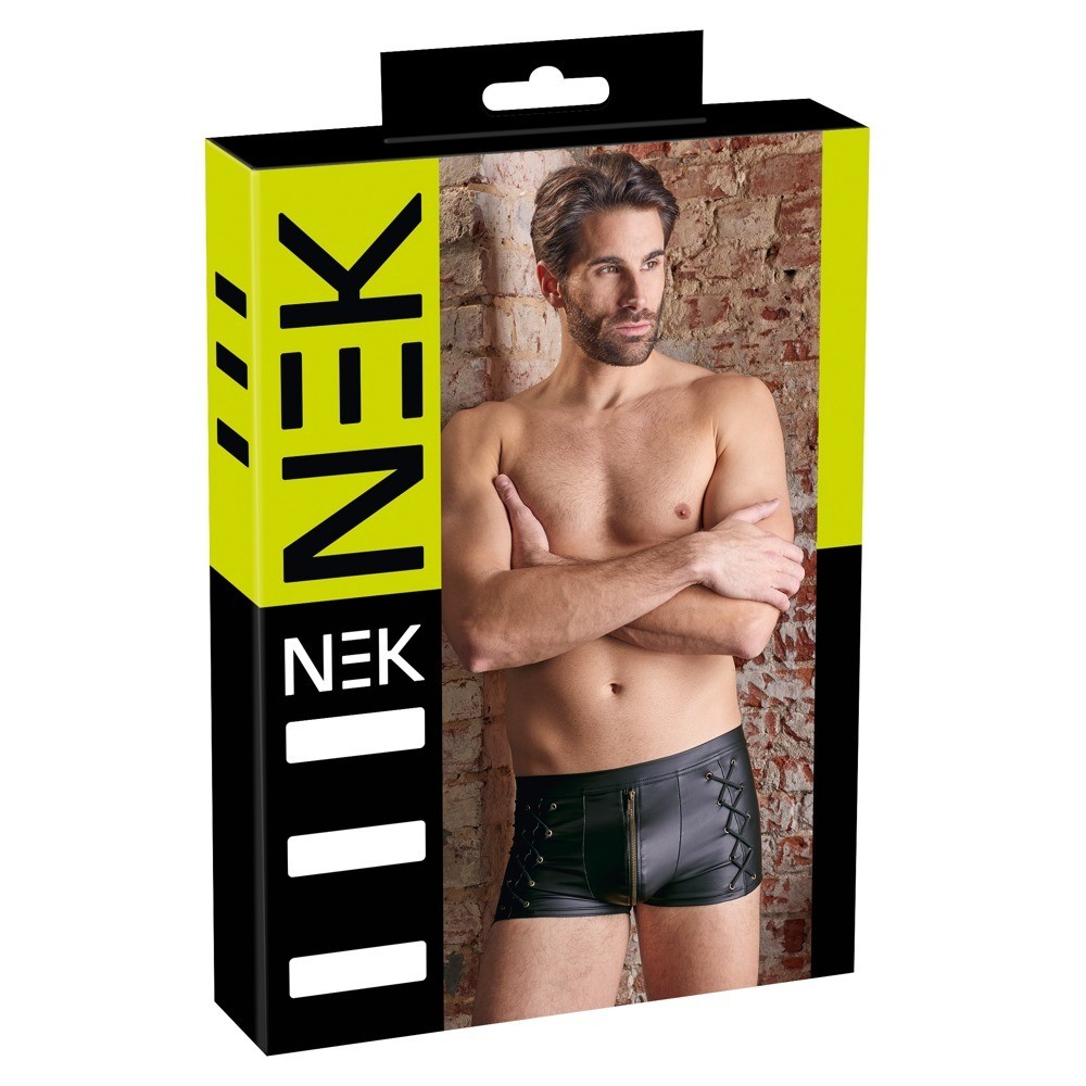 Calção preto com fecho de correr em latão acolchoado à frente e laços marcantes nas laterais. Com cós revestido a tecido, apresenta um material justo e elástico que garante um ajuste perfeito e elevado conforto.
