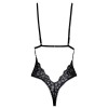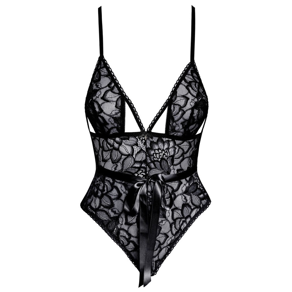 Elegante body da Kissable, inteiramente confecionado em renda preta fina. Macio e elástico para um ajuste confortável. Design sedutor com copas sem aro e tiras elásticas na zona do decote. O laço de cetim pode ser atado à frente, realçando a cintura. O corte de perna subida valoriza as nádegas e alonga visualmente as pernas. Na parte de trás, apresenta fecho de gancho. Alças ajustáveis para um ajuste perfeito.
