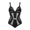 Body preto Chic Amoria da Obsessive, com pequeno detalhe de joalharia entre as copas com aro. Estilo clássico que combina secções opacas com transparências subtis. Suave e elástico em todo o corpo, oferece conforto perfeito. As alças largas e confortáveis, bem como o fecho de gancho nas costas, são ajustáveis para um encaixe ideal.