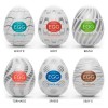 Caixa de 6 ovos masturbadores compactos e descartáveis no Variety Pack New Standard da TENGA, cada um com textura estimulante diferente no interior: Wave II, Boxy, Brush, Tornado, Sphere e Silky II. As mangas muito flexíveis estão acondicionadas em embalagens com formato de ovo e incluem lubrificante para utilização imediata.