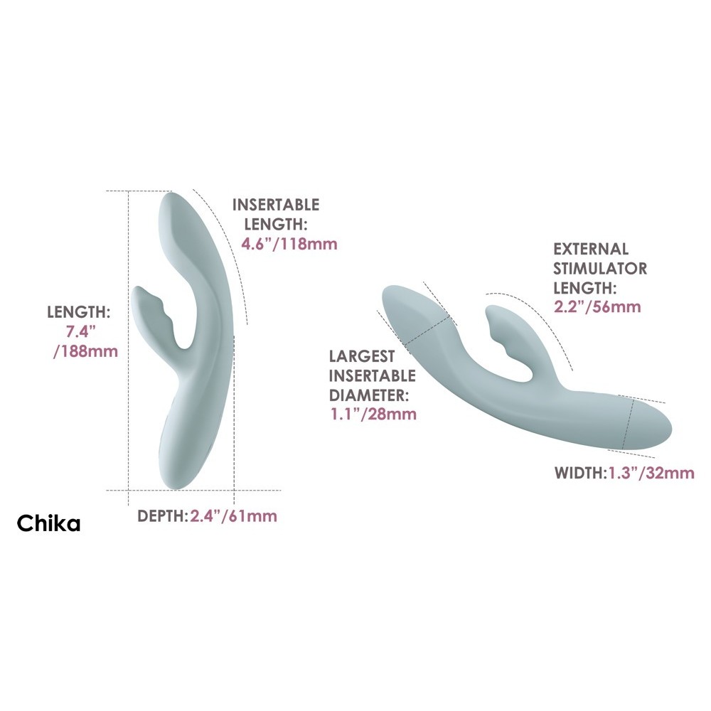 O Chika é feito de silicone líquido aveludado e macio, o que significa que é agradavelmente firme, mas também maravilhosamente flexível. Adapta-se perfeitamente ao corpo e aos seus movimentos. É fácil de inserir e é muito confortável durante o prazer, graças à sua superfície extremamente macia.
