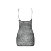 Os recortes estratégicos na zona do busto adicionam um toque ousado e sofisticado, enquanto o padrão moderno e sedutor transforma a peça num verdadeiro ícone de glamour.