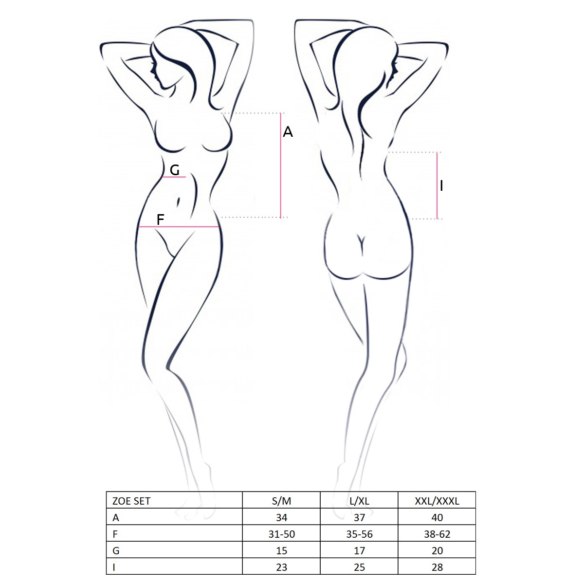 | Tamanho | Medida do Busto | Tamanho do Soutien | Cintura | Anca | UK |