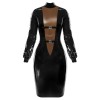 O vestido de látex preto combina elegância e ousadia, com um design justo, mangas compridas e um decote em V profundo e fumado. Extrema sensualidade com ajuste perfeito!
