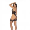 A malha transparente realça as curvas, enquanto as alças largas em estilo liga emolduram as ancas e alongam visualmente as pernas, criando um efeito marcante e sedutor.