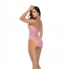 O decote halter valoriza os ombros, enquanto o corte que realça as curvas e a parte traseira em tanga ousada criam uma silhueta elegantemente provocante. Uma peça romântica, mas arrojada, que combina detalhes delicados com um encanto irresistível.