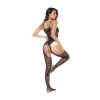 Charme e sedução em cada detalhe — catsuit de rede com renda e atilhos para um look ousado, elegante e irresistível.