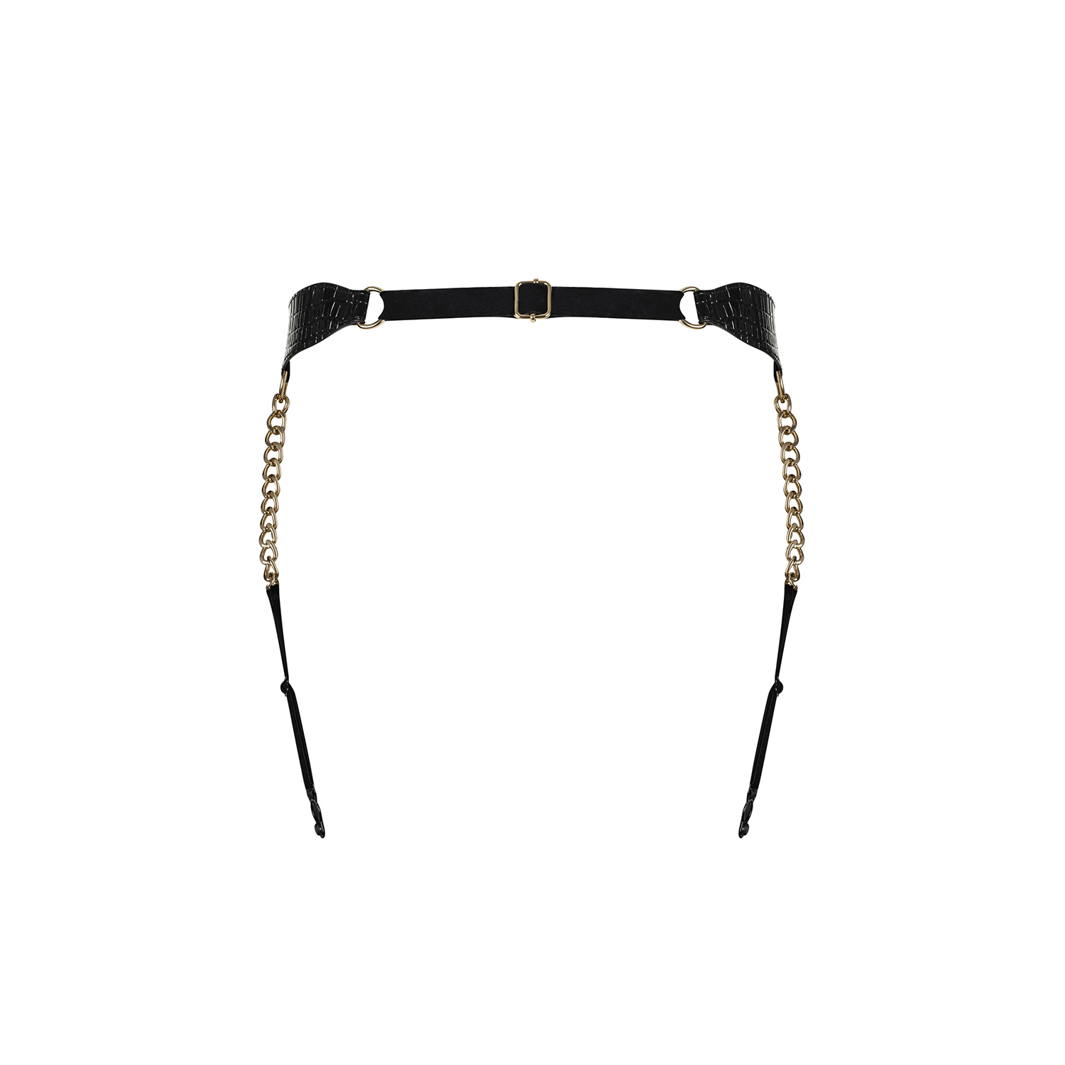 - garter belts made of a combination of black material and gold chains