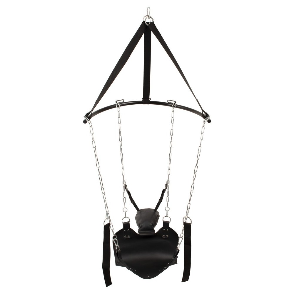 Сексуальная качель You2Toys может быть закреплена на потолке с помощью прочных ремней (каждый ремень длиной 73 см) и крепких цепей (каждая цепь длиной 92 см), которые затем прикрепляются к полукруглым кольцам толщиной 2,7 см. Высота и длина регулируются, что делает ее идеальной для партнеров разного роста.