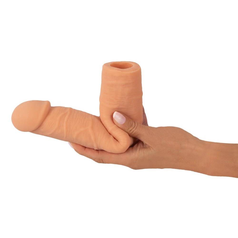 Насадка для пениса Extension Sleeve от Nature Skin делает пенис на 7 см длиннее и примерно на 2 см толще. Насадка с выраженными венами и выступающей головкой легко надевается на пенис и используется для глубокого и приятного удовольствия.