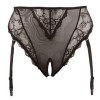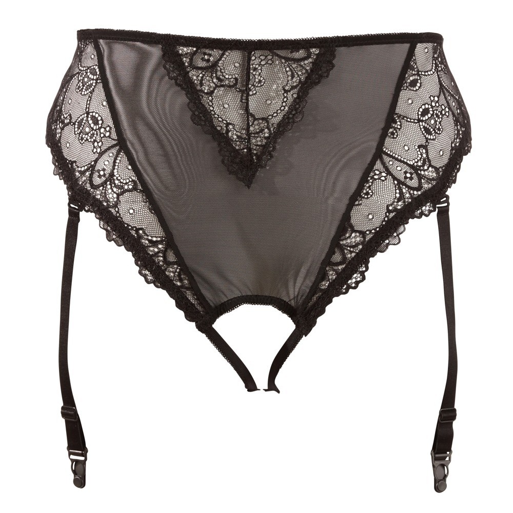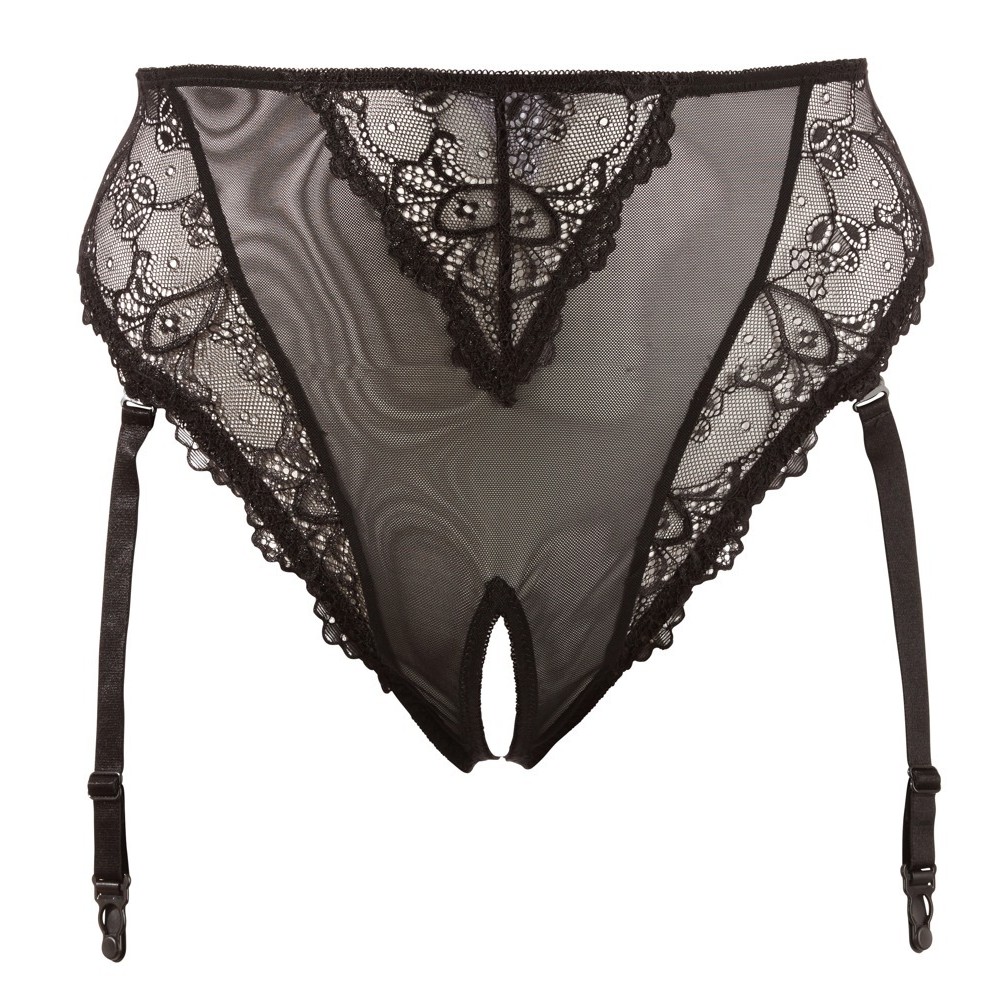 Трусики с подтяжками и без промежности, изготовленные из powernet с нежным цветочным кружевом. Высокая талия подчеркивает живот и талию, выделяя изгибы. Подтяжки регулируются и могут быть полностью сняты.