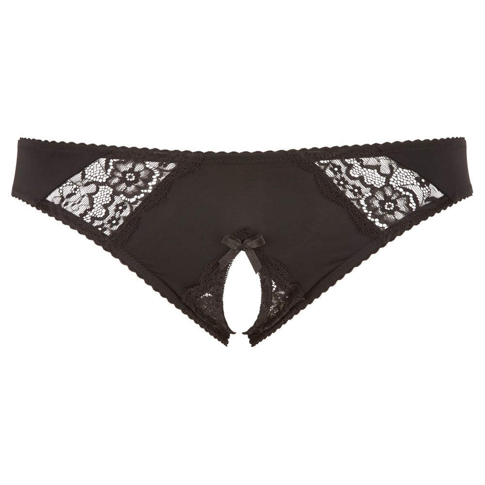 Обтягивающие трусы с эластичной кружевной вставкой спереди. Область паха соблазнительно открыта, а дизайн подчеркивается дерзким декоративным бантом, который добавляет неотразимости.