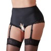 Эти черные трусы чрезвычайно сексуальны, с вырезом в области паха. Имеют четыре регулируемые и съемные ремешки для чулок, а также элегантные кружевные вставки вокруг ног. Прочный материал в передней части слегка моделирует живот, обеспечивая комфорт и стиль.