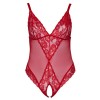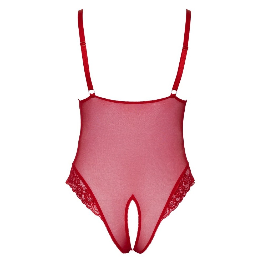 Прозрачный боди без промежности от Cottelli CURVES, изготовленный из нежной пудровой ткани, с бесшовными чашками и кружевными вставками. Боди эластичный и мягкий, обеспечивает плотное и удобное прилегание. Широкие бретели регулируются для идеальной посадки.
