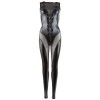 Комбинезон из прозрачной ткани с блестящим мокрым эффектом, который смело подчеркивает изгибы тела. Модель без рукавов, с бантом спереди и двухсторонней застежкой-молнией в области промежности. Длинная и незаметная застежка-молния сзади позволяет легко надевать и снимать комбинезон.