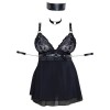 Комплект Cottelli BONDAGE состоит из бабедолла, ошейника, зажимов для рук и бондажного платка. Короткая, слегка расклешенная бабдолл изготовлена из нежного эластичного полотна powernet, с двухслойной юбкой и кружевными чашками, которые можно быстро расстегнуть с помощью кнопок. Регулируемый ошейник, регулируемые бретели и лента под грудью из матового материала украшены серебряными заклепками и кольцами. Петли для рук можно закрепить на боковых кольцах с помощью кнопок и легко отрегулировать благодаря застежкам-крючкам и кольцам. В комплект также входит бондажный платок длиной 1,20 метра, который можно использовать в качестве ограничителя или повязки на глаза.