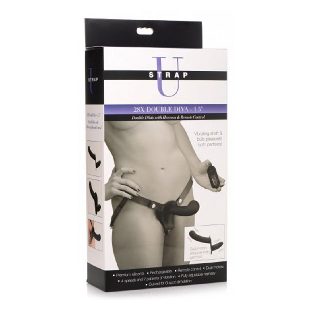 Страпон с двумя премиальными силиконовыми вибрирующими фаллоимитаторами, 4 скоростями, 7 узорами и беспроводным пультом управления.